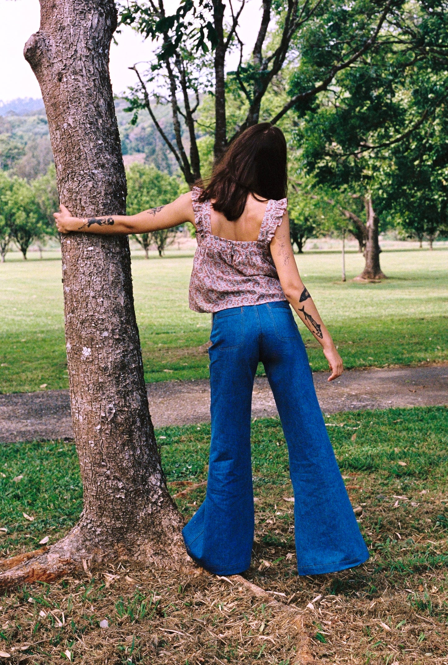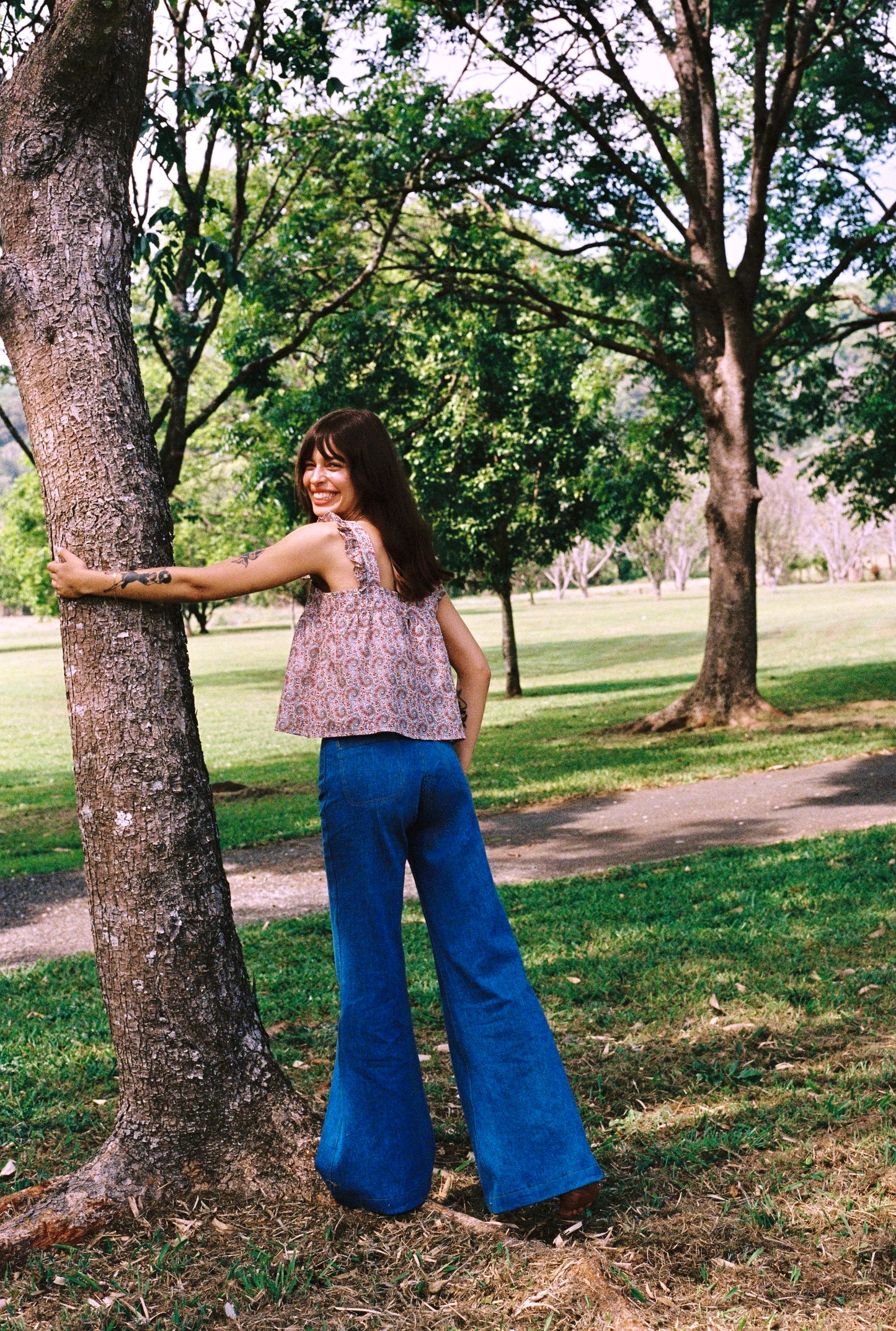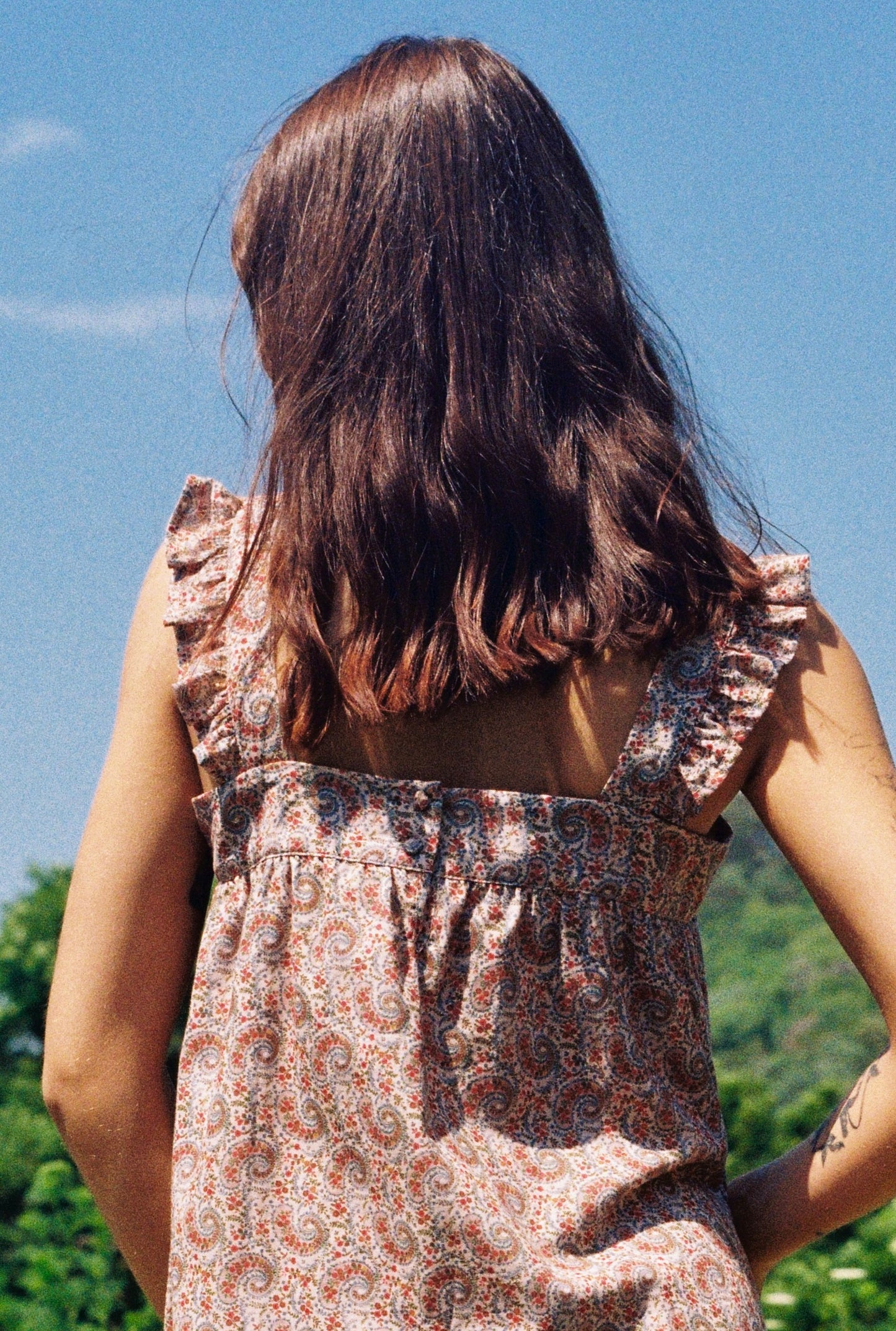 We love the breezy effortless feel of this cute top. The square neckline is trimmed in the sweetest of frills and printed in a classic vintage paisley and is lined inside. Perfect summer piece paired with our Generation Jean.
