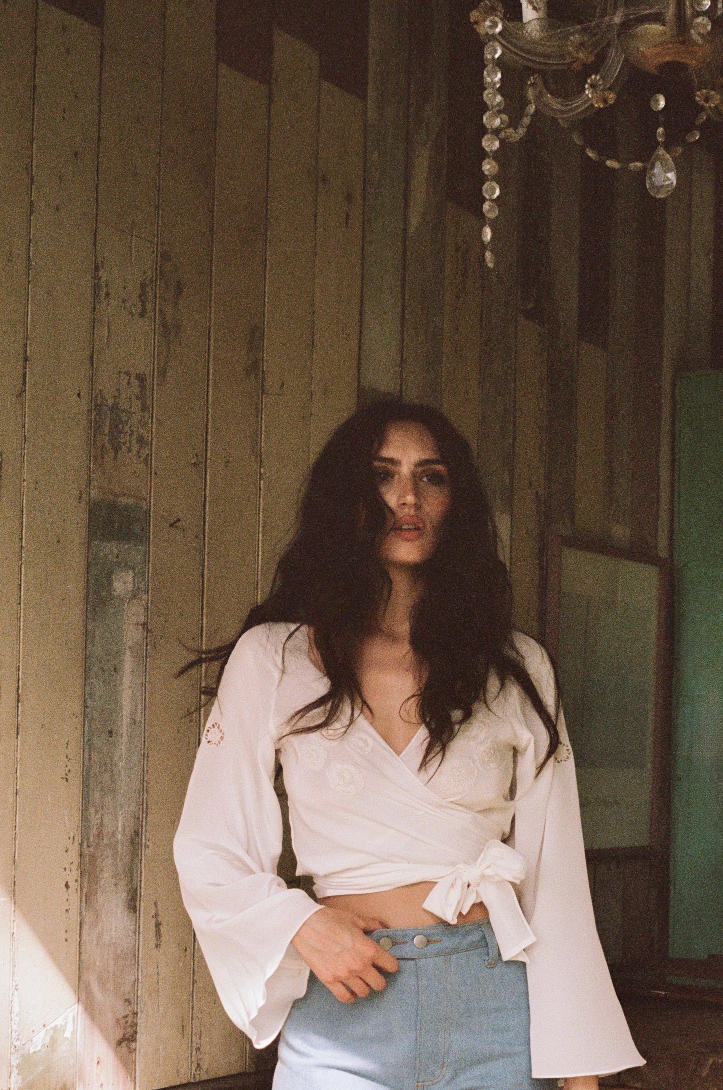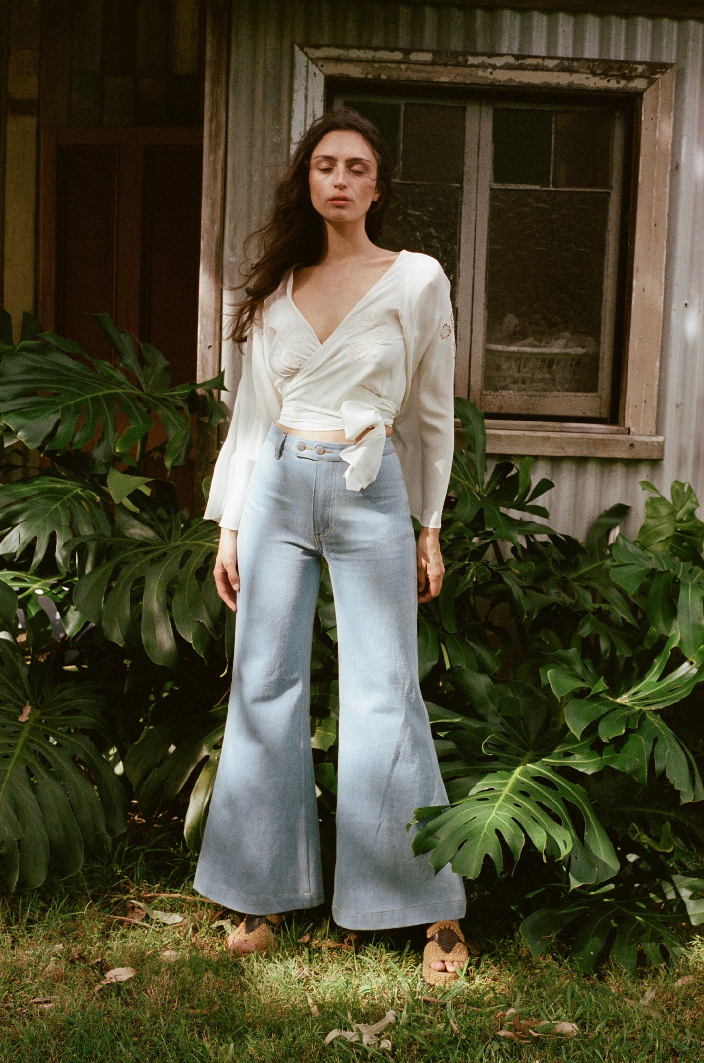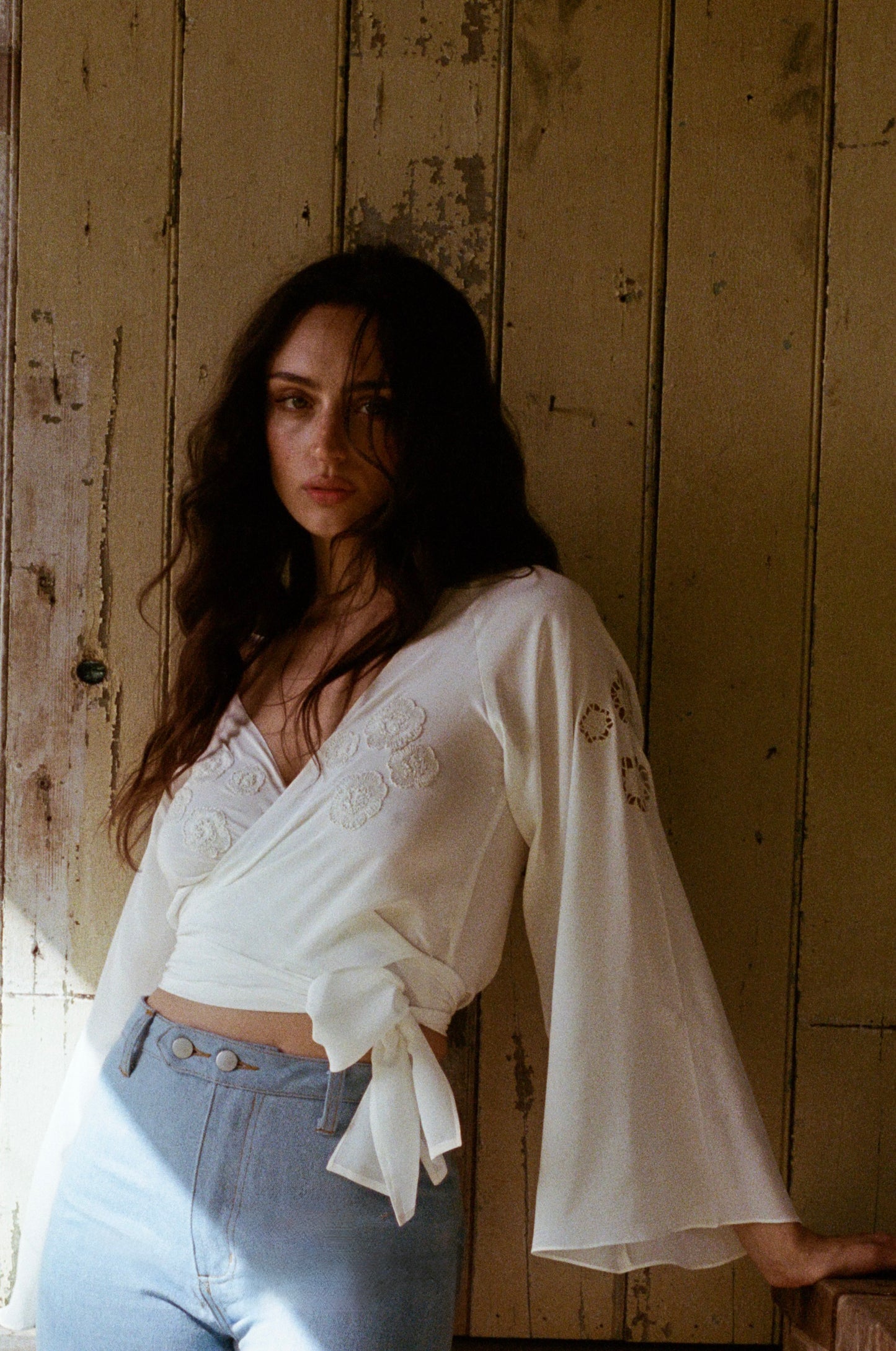 We used a mid weight silk for a more weighty feel and a little extra modesty. The gorgeous flared sleeves catch the light and sway in the breeze as you move about. We love this paired with denim (jeans pictured coming next month) and can easily be dressed up or down day/night.